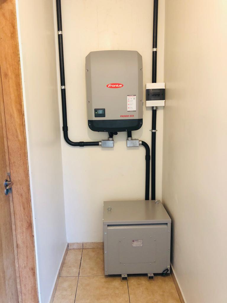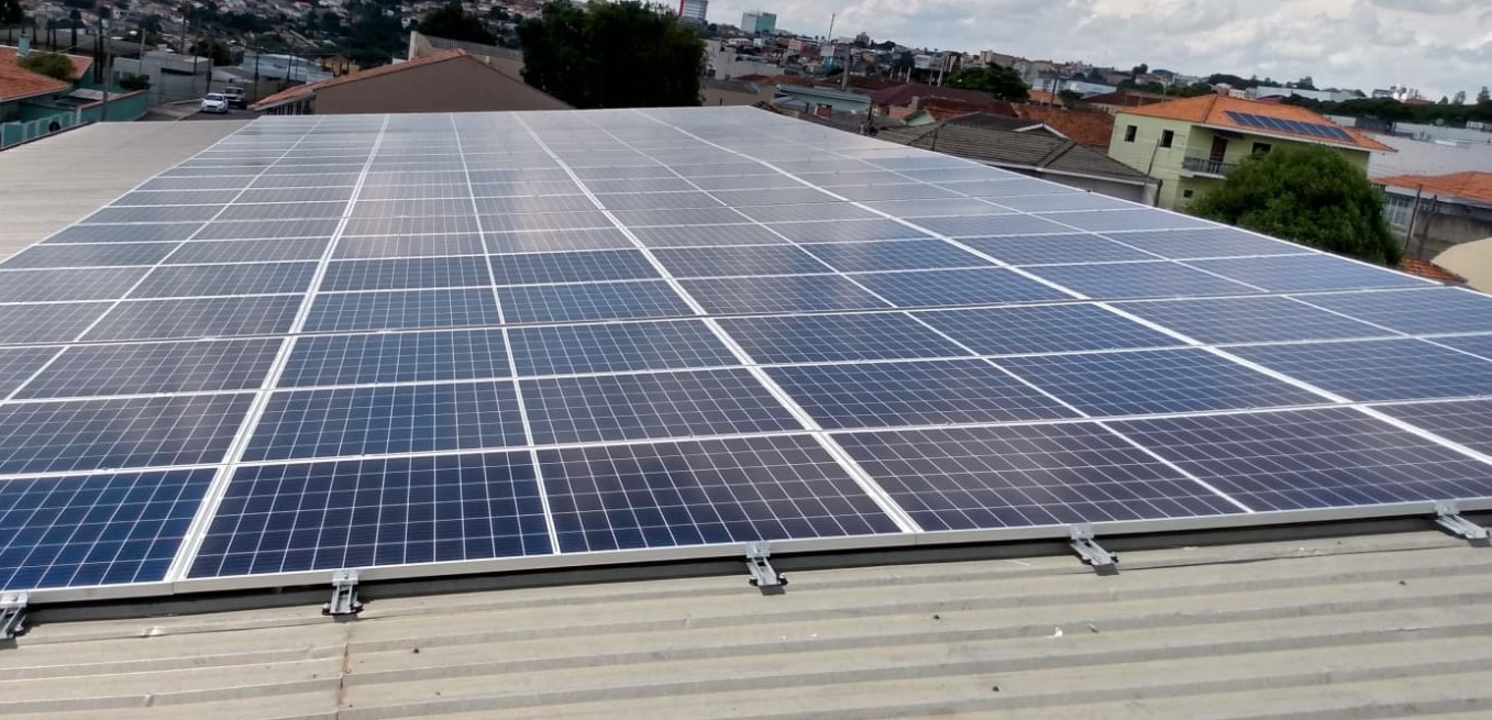 Instalação de 76 módulos/painéis fotovoltaicos , inversor FRONIUS e devidas proteções.